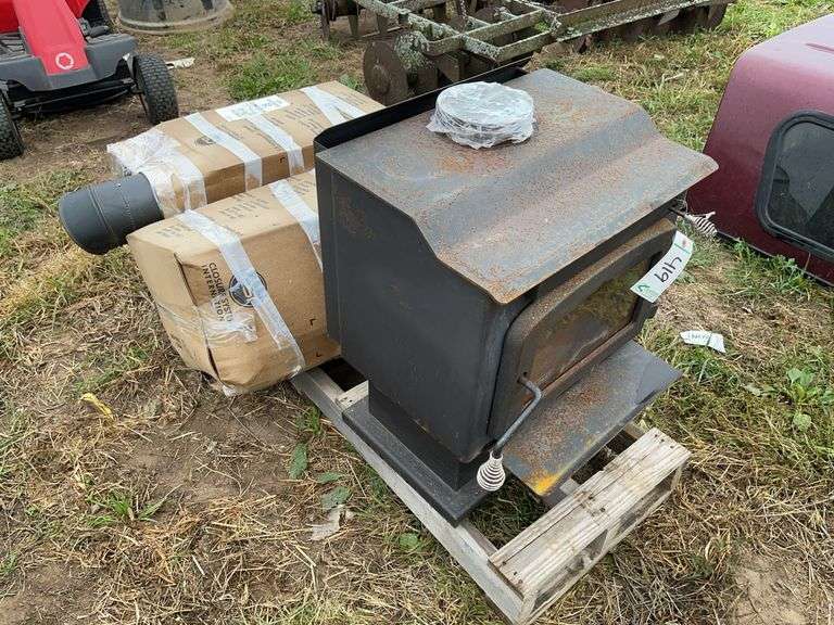 LOT 419 - Drout wood burner 26" H x 18" D x 22" W with piping, row:4